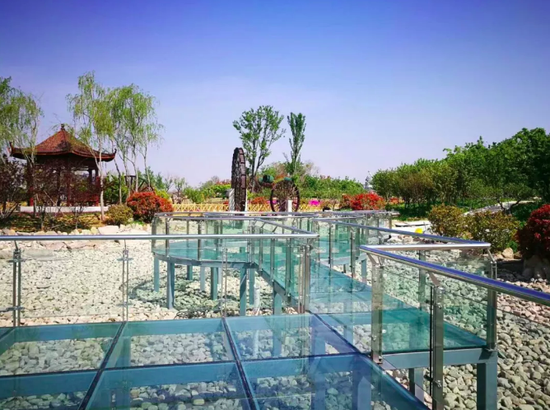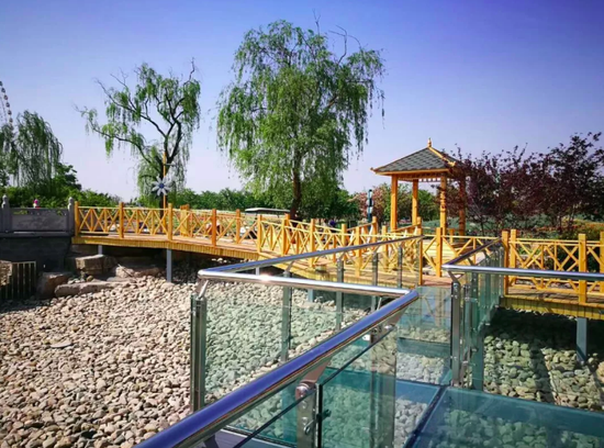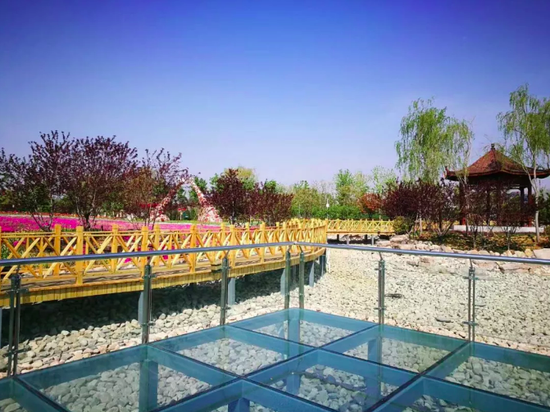 天颐湖泰山花海锦鲤池占地2000平方米,位于桃花溪,分为木栈道观赏区,玻璃栈桥投喂区,吃奶鱼娱乐区,锦鲤许愿区。