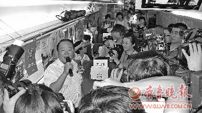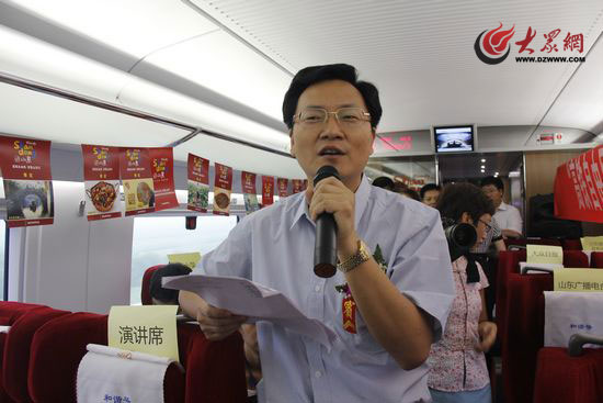 八个高铁沿线城市旅游局长一一亮相,通过高铁广播推介好客山东。图为济南市旅游局局长王铁志 本网记者 曲磊/摄